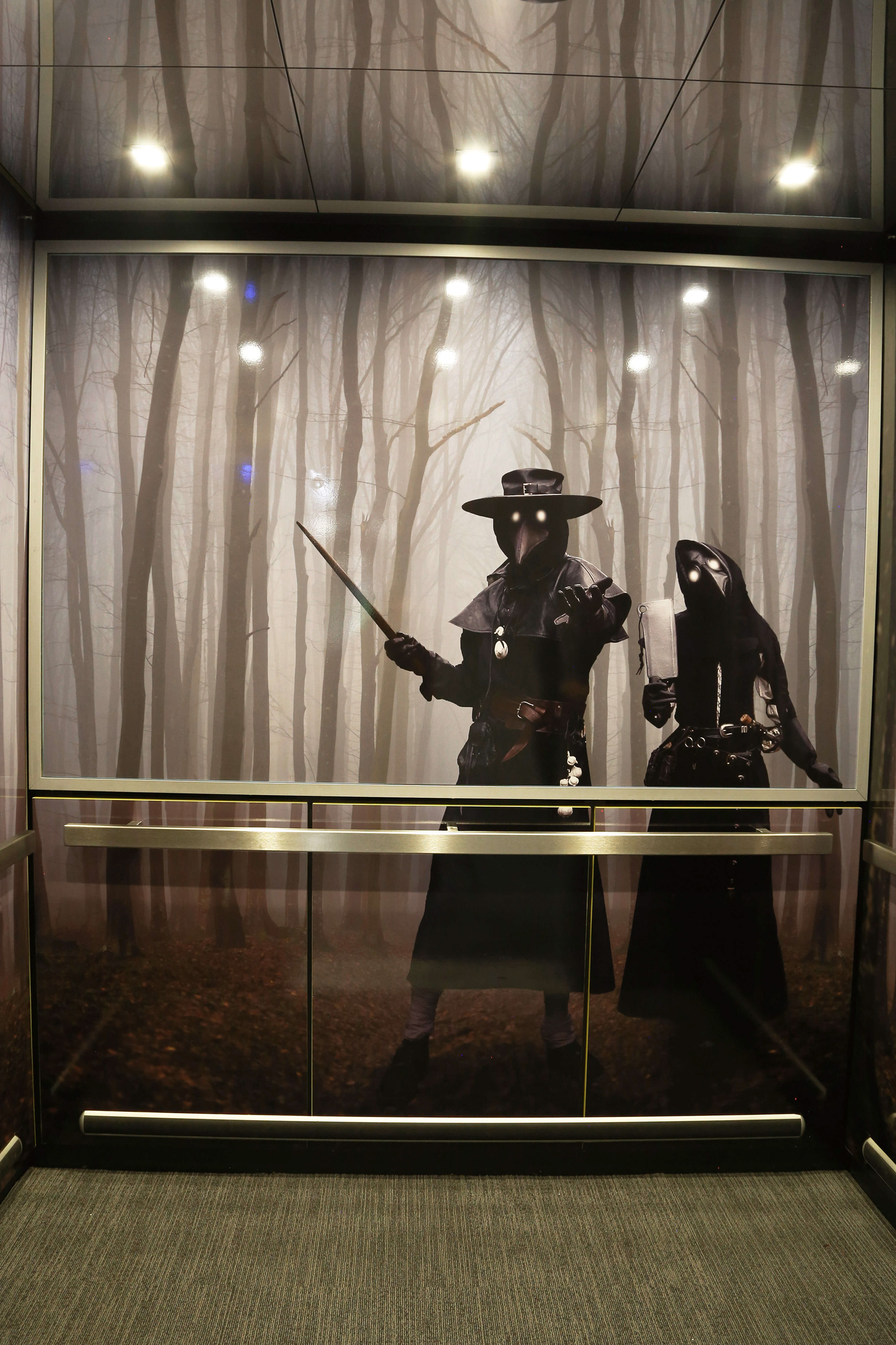 Vinyl elevator wraps for Halloween events photo editing and compositing, illustration, and application